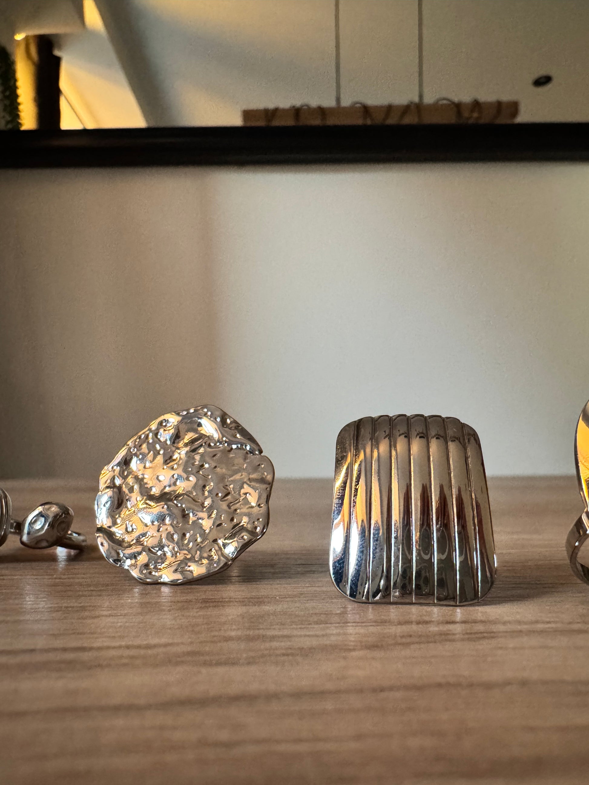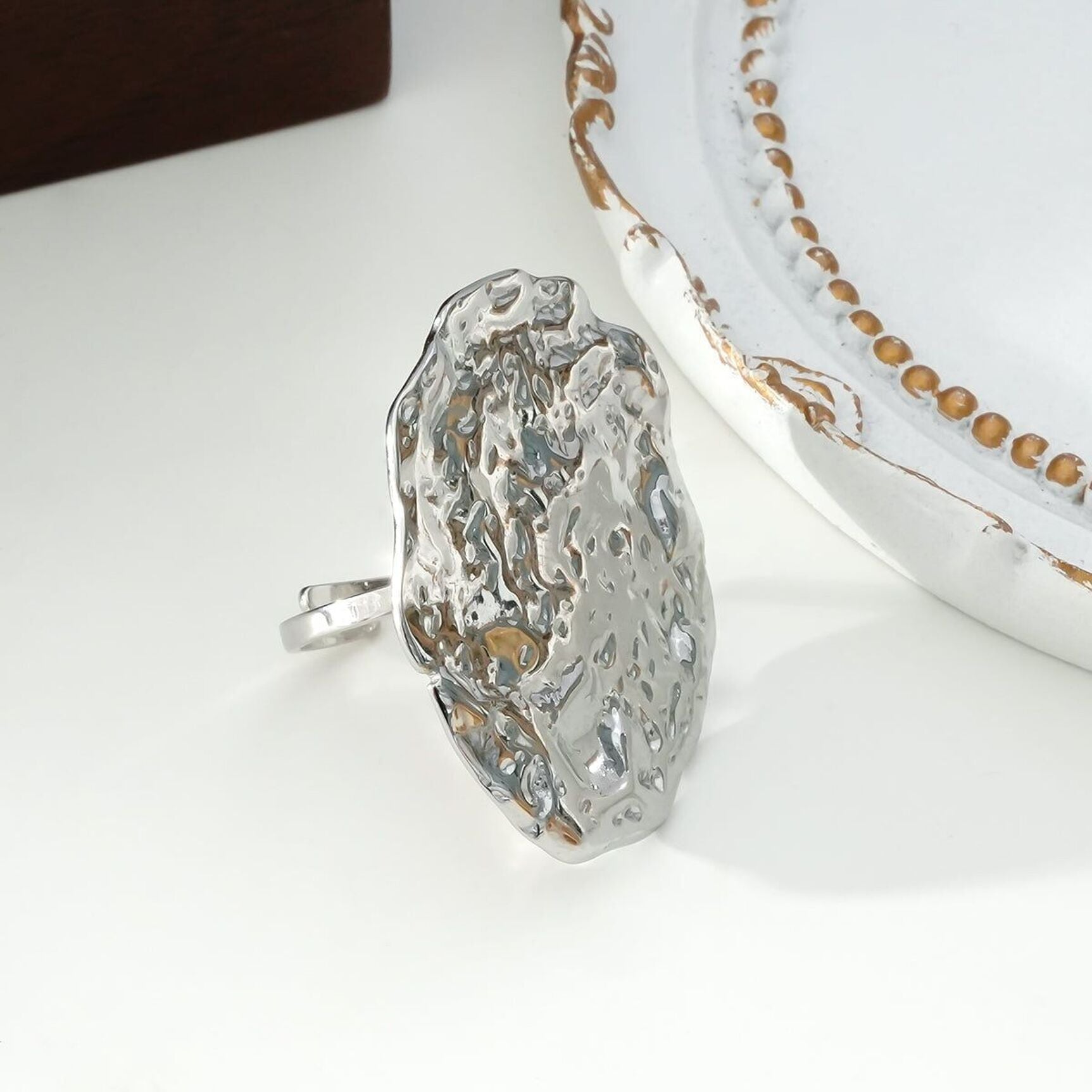 Bague oversize en acier inoxydable argenté.