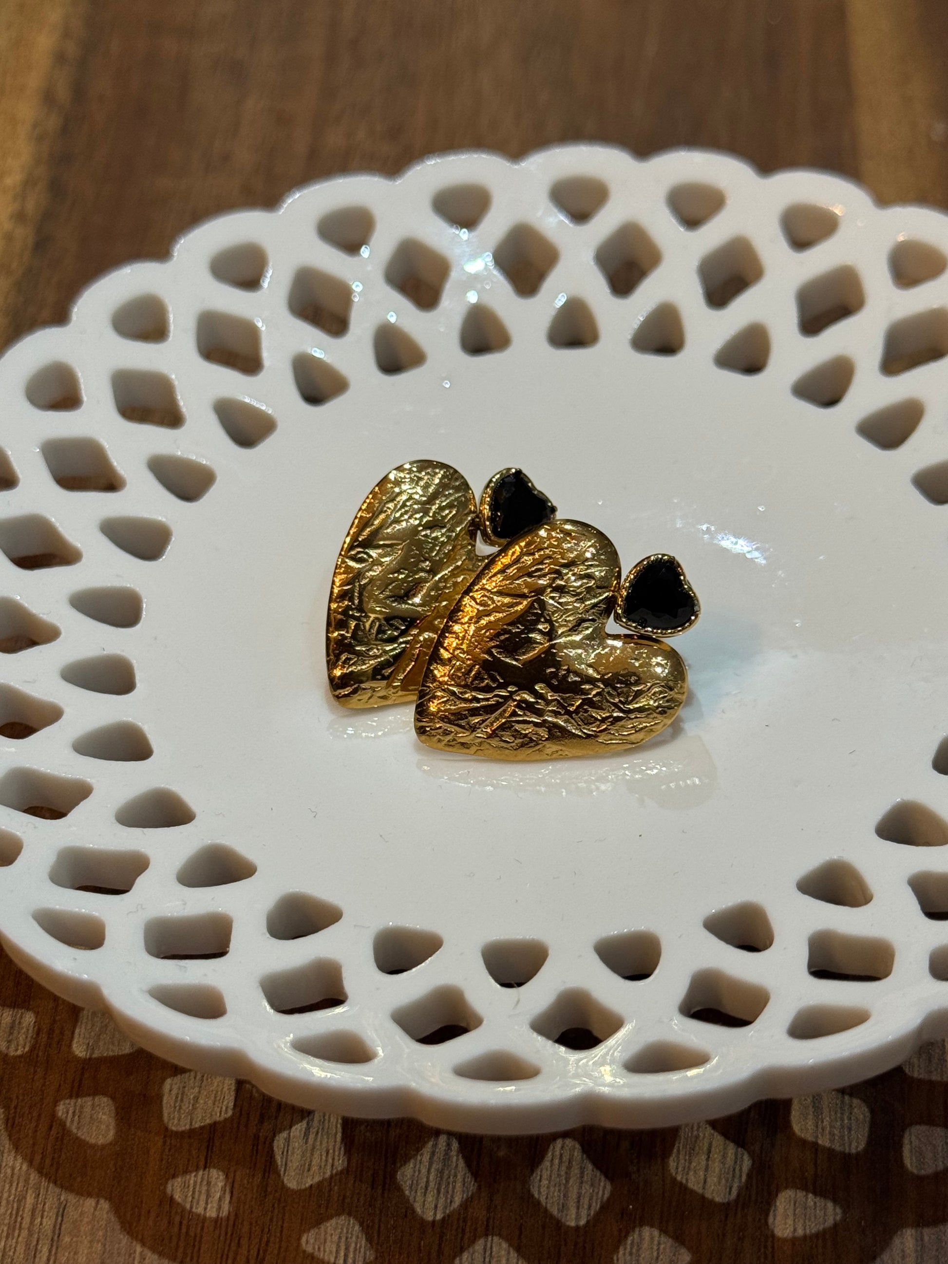 Petites boucles d'oreilles dorées en acier inoxydable, puces noires.