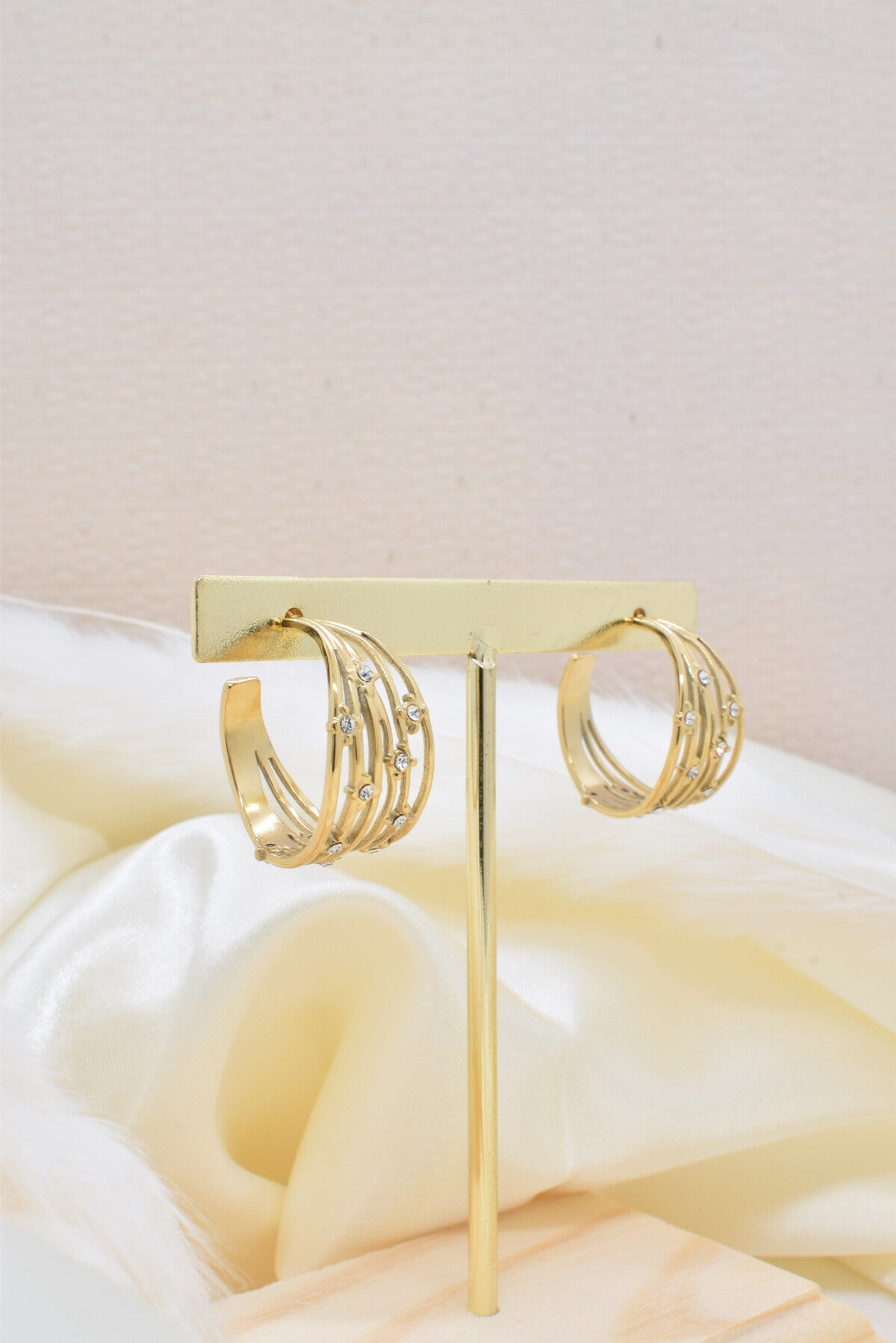 Créoles ouvertes en acier inoxydable doré et petites étoiles.